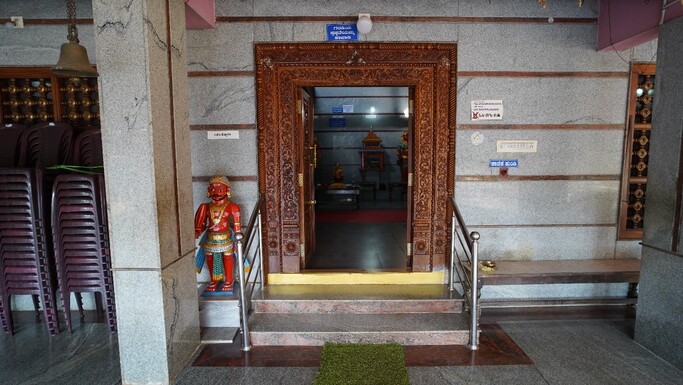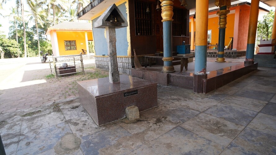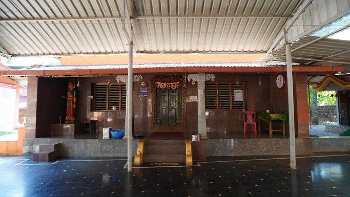 ಗರೋಡಿಯ ಹೊರಗೆ ಬಾಗಿಲು ಬೊಬ್ಬರ್ಯನ ಮರದ ಮೂರ್ತಿ ಇದೆ.