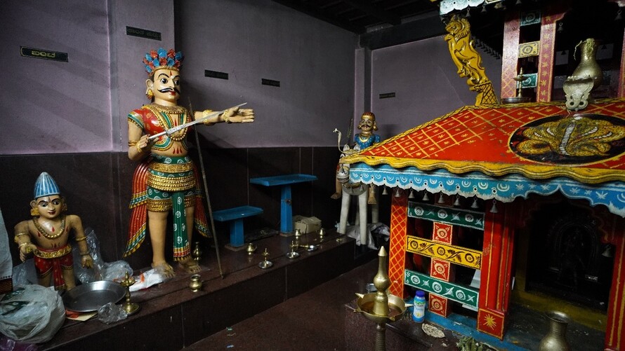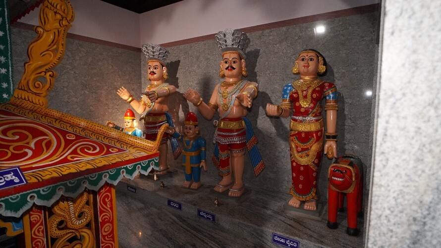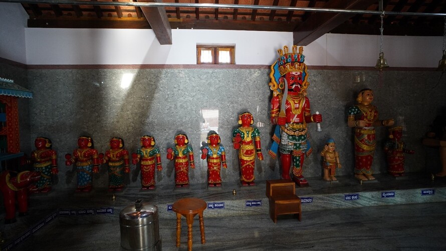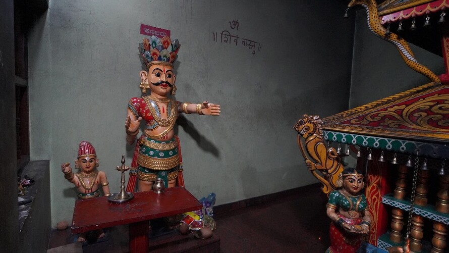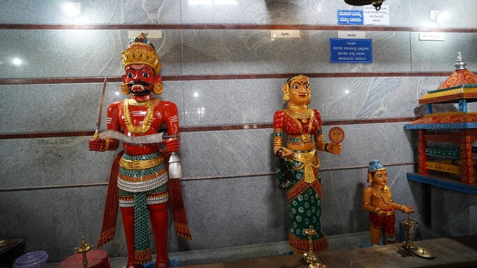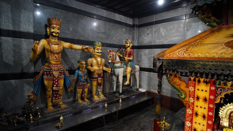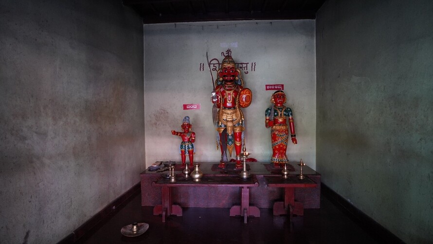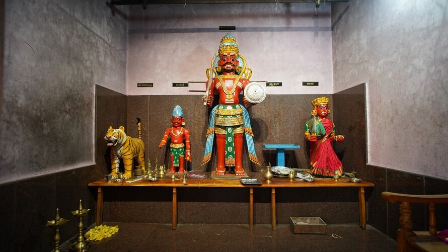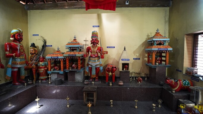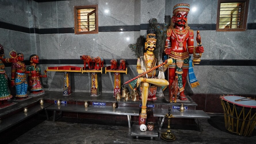 ಬಲಬದಿಯಲ್ಲಿ ಬೈದ, ಬಂಟ ಹಾಗೂ ಕಿನ್ನಿದಾರುವಿನ ಮರದ ಮೂರ್ತಿಗಳಿವೆ.