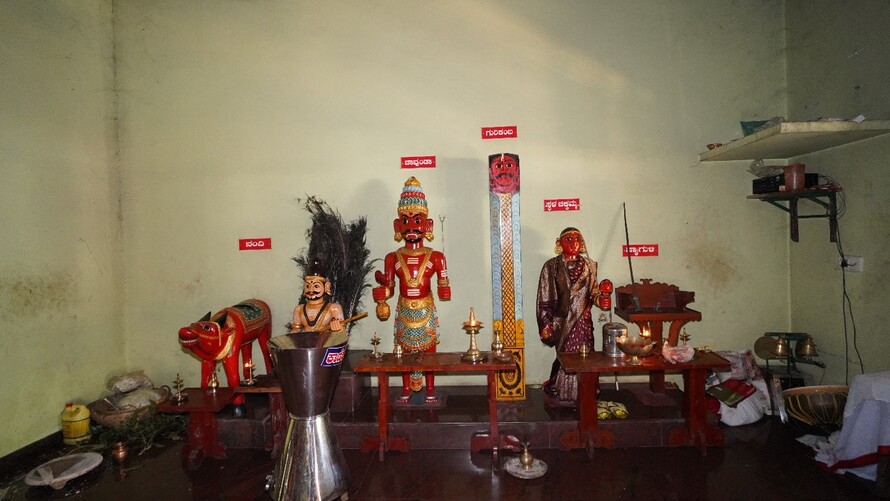 ಬ್ರಹ್ಮಗುಡಿಗೆ ಎದುರು ಮುಖವಾಗಿ ಜೋಗಿ ಪುರುಷ, ಹೊಸಿ ಹೈಗುಳಿ, ಕೆಂಪಣ್ಣ ಹೈಗುಳಿ, ಮುರ್ ಶಂಡಿ, ಮೂಕ ಹೈಗುಳಿ, ಕೆಪ್ಪ ಹೈಗುಳಿ, ದೈವಗಳ ಮರದ ಮೂರ್ತಿಗಳಿವೆ.